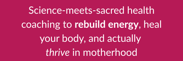 I'm a science-meets-sacred nutrition & health coach who is on a mission to get moms back to thriving by unlocking new energy and shifting out of overwhelm so that they can show up fully in their lives as the person they want to be (and have a great time doing it!).
