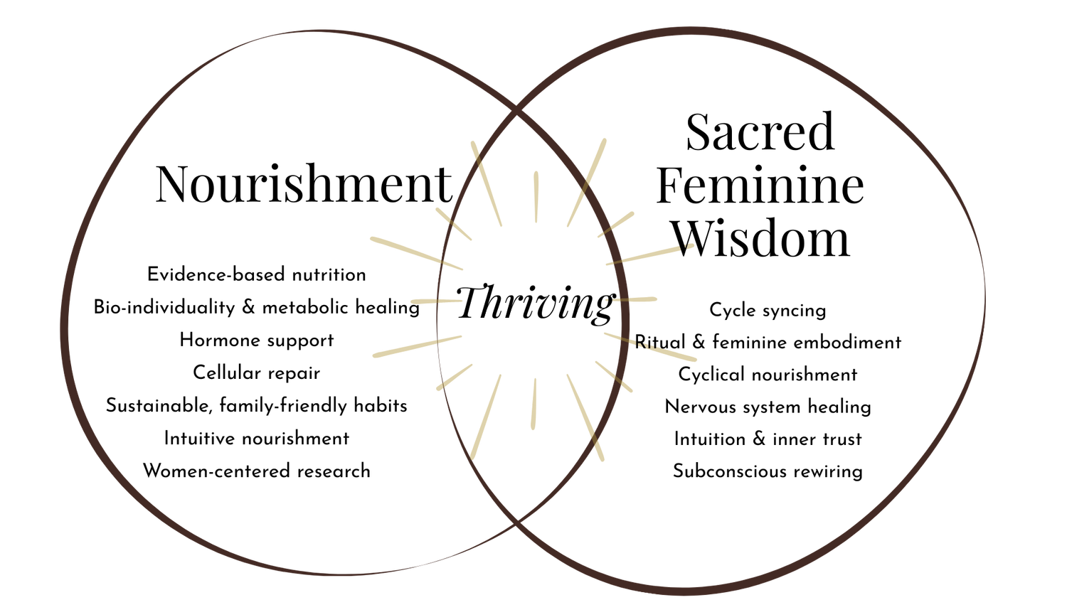 In Thrive Mama, we take a science-meets-sacred approach. Alongside foundational nourishment, nutrition science, and hormonal supports, you’ll be held in a space that honors ritual, intuition, and your body's wisdom.